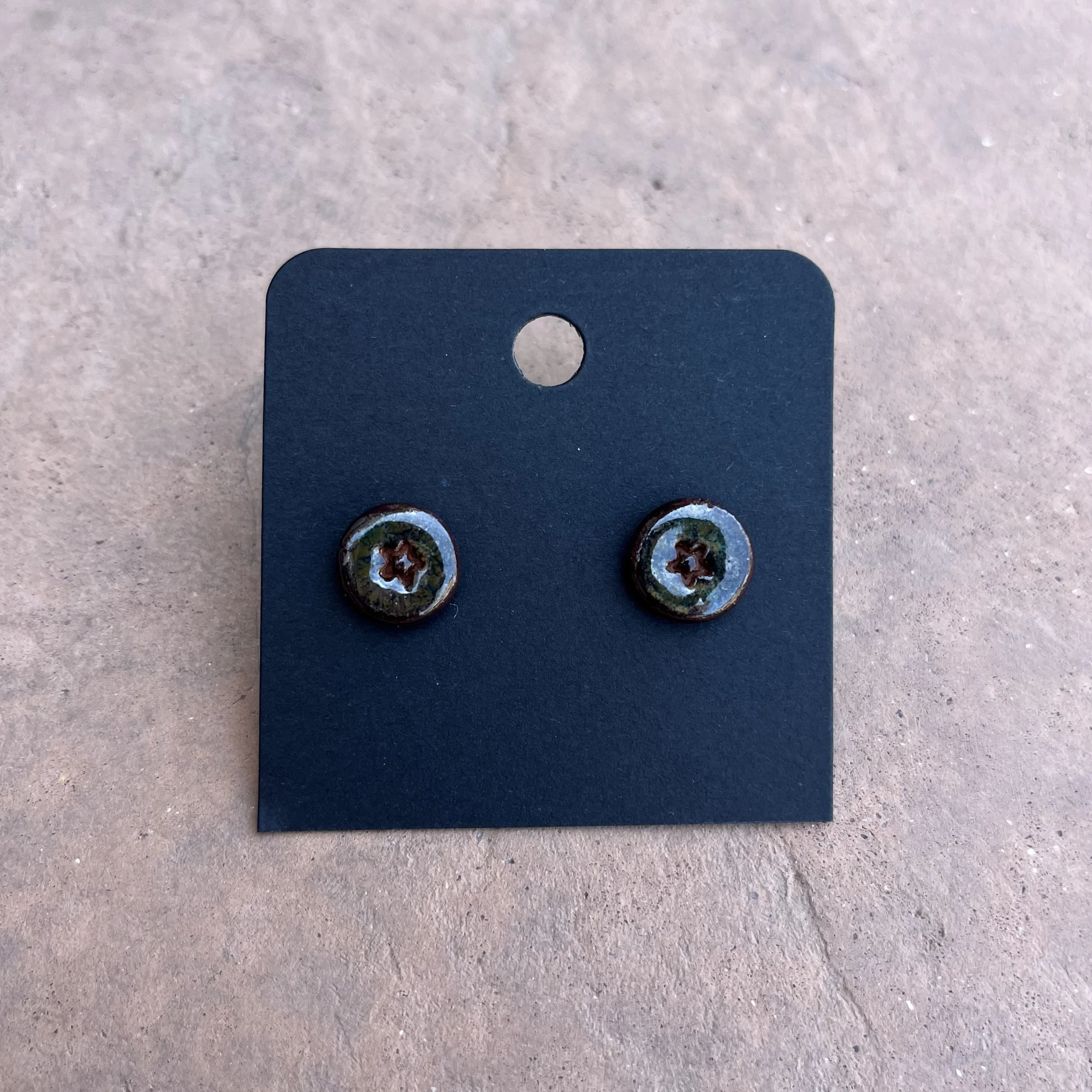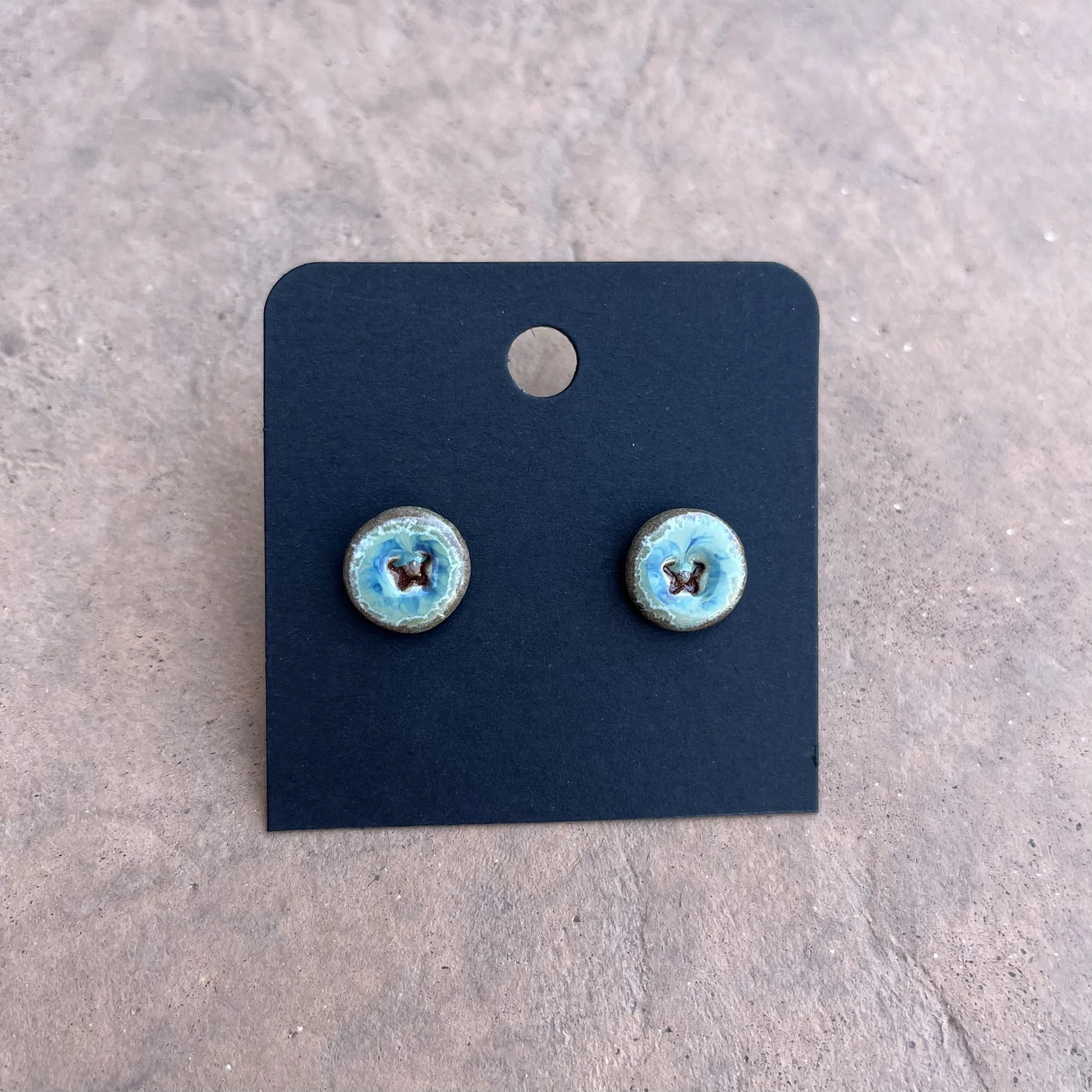 All clay earrings are made by hand. These photos are used to reference of style options. There is a possibility of small differences among glaze colors and impressions compared to these photos.