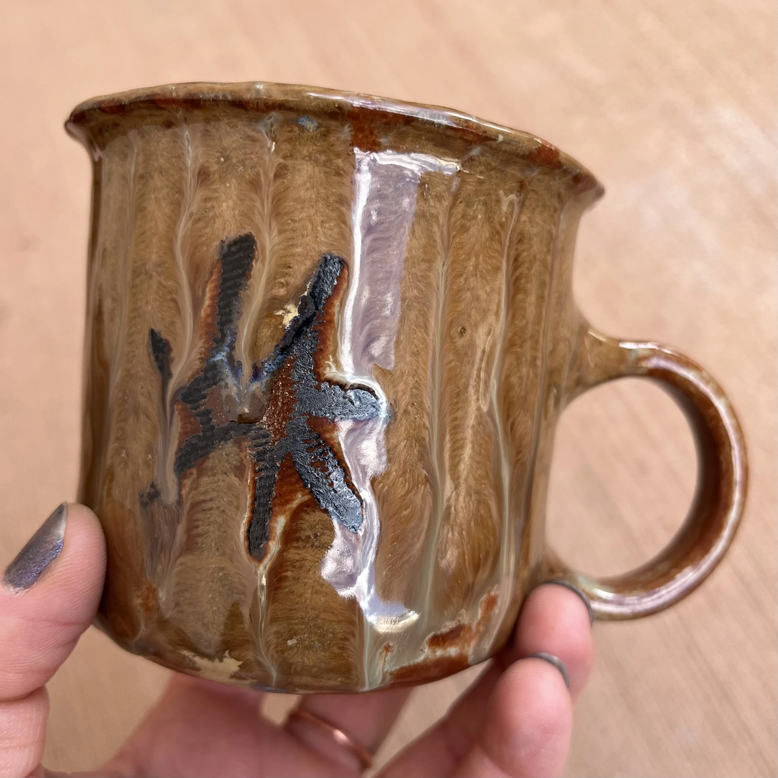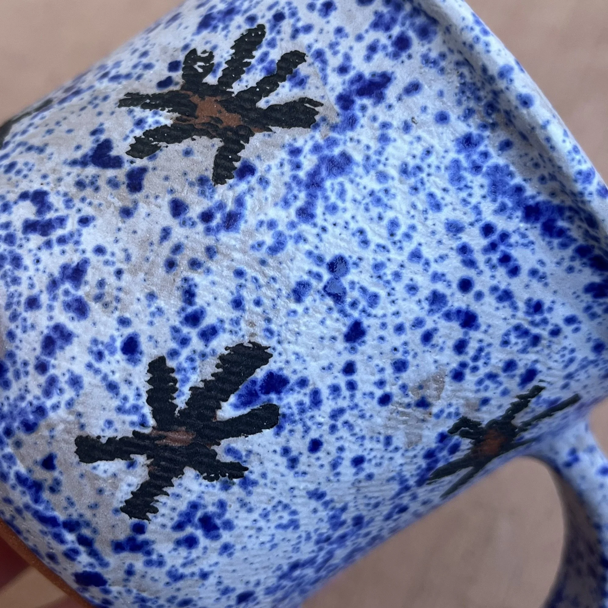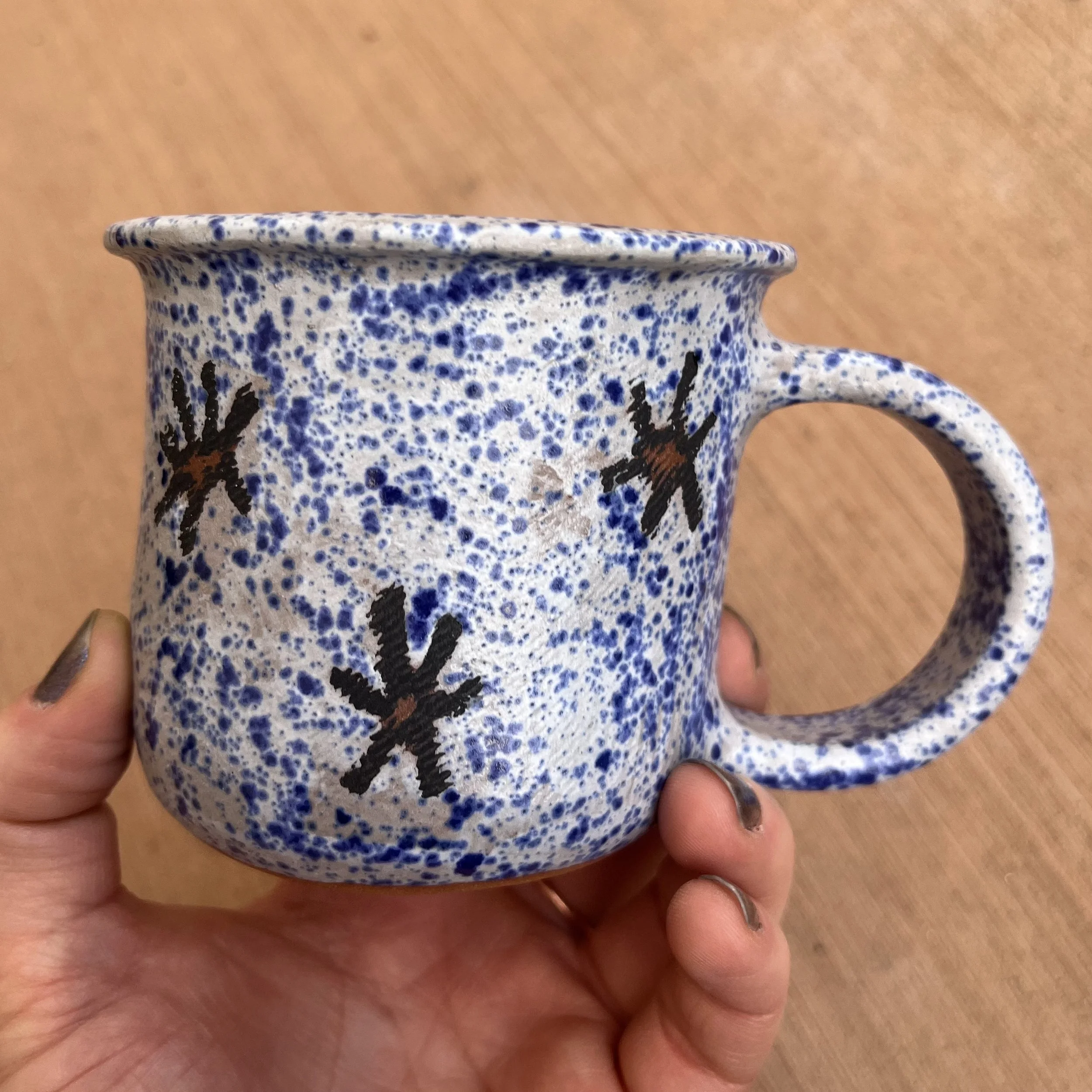 5 Point Star Drawn Jade Drizzle Glaze Celestial Handbuilt Mug